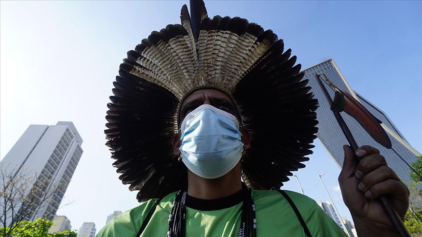 Brezilya'da yerlilerin toprak haklarıyla ilgili önemli bir davanın Yüksek Mahkemesi'ndeki duruşması devam ederken Sao Paulo şehrinde bir araya gelen Pataxo yerlileri protesto gösterisi düzenledi.