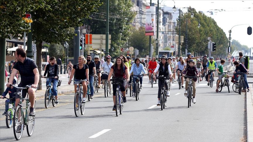 Belçika'nın başkenti Brüksel'de bir günlüğüne motorlu araçlara kapatılan yollar ve sokaklar, yayaların ve bisikletlilerin oldu.