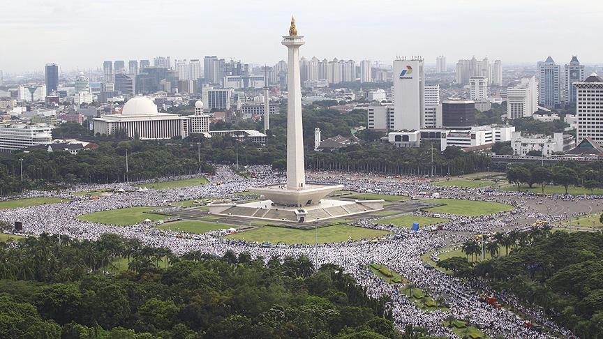 Endonezya'nın başkenti Cakarta'da İslam'a hakaret ettiği ileri sürülen Cakarta Valisi Basuki Tjahaja Purnama'ya karşı cuma namazından sonra düzenlenen protesto gösterisine yüz binlerce kişi katıldı.