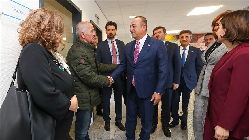 Türkiye'nin Düsseldorf Başkonsolosluğunu ziyaret eden Çavuşoğlu, konsolosluğun vize işlem bölümünde incelemelerde bulundu.