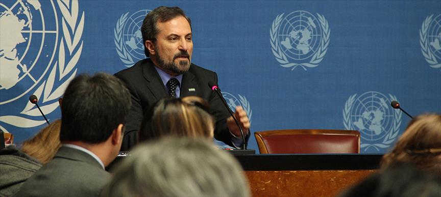 Suriye Muhalif ve Devrimci Güçler Ulusal Koalisyonu (SMDK) Sözcüsü Luey Safi, Cenevre'deki barış görüşmelerinin ikinci turunda Birleşmiş Milletler (BM) ve Arap Birliği Suriye Özel Temsilcisi El-Ahdar el-İbrahimi'yle yaptıkları görüşmenin ardından BM Cenevre Ofisi'nde basın toplantısı düzenledi.
