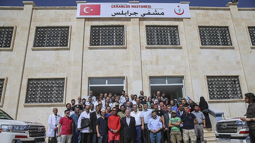 Sağlık Bakanlığı Uluslararası İlişkiler ve Acil Sağlık Hizmetleri Daire Başkanı Dr. Muhammed Bayram, AA muhabirine yaptığı açıklamada, Cerablus'ta talebin artması üzerine atıl durumdaki eski bir okul binasını 14 günde onardıktan sonra hastaneye dönüştürdüklerini söyledi.