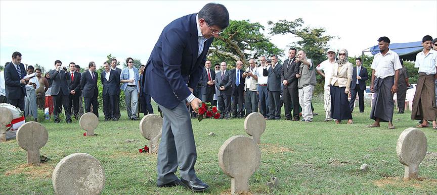 Dışişleri Bakanı Ahmet Davutoğlu ve eşi Sare Davutoğlu, Mektila'daki Türk şehitliğine çelenk koyarak şehitlerin mezarlarına gül bıraktılar. Şehitlerin ruhu için Kur-an'ı Kerim okunmasının ardından konuşan Bakan Davutoğlu, "Bugün burada tarihi bir buluşmaya, bir vuslata şahit oluyoruz. I. Dünya Savaşı'nda çok değişik cephelerden, Filistin'den, Mısır'dan, Irak'tan, Suriye ve diğer cephelerden toplanarak, esir olarak Basra'ya getirilip, daha sonra Basra'dan Karaçi'ye gemilerle, Karaçi'den Kalküta'ya trenlerle, Kalküta'dan da Yangon'a, oradan da buraya esir kamplarına getirilen dedelerimizin huzurundayız" dedi.