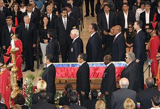 Başkent Caracas'ta, Chavez'in naaşının bulunduğu askeri akademide yapılan törende, Türkiye'yi Başbakan Yardımcısı Beşir Atalay temsil etti. Törene, İran Cumhurbaşkanı Mahmud Ahmedinejad, Küba Devlet Başkanı Raul Castro ve Rusya Dışişleri Bakanı Sergey Lavrov'ın yanı sıra çoğu Karayip ve Güney Amerika ülkelerinden yaklaşık 30 ülkenin devlet ve hükümet başkanı katıldı.