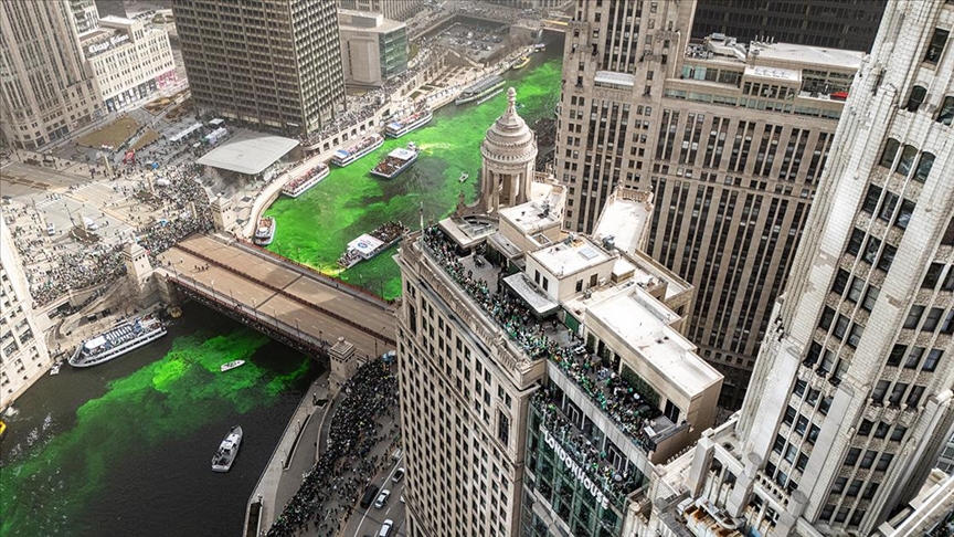 ABD'de her sene en renkli Aziz Patrick Günü etkinliklerine ev sahipliği yapan Chicago'da bu gelenek bu yıl da bozulmadı.