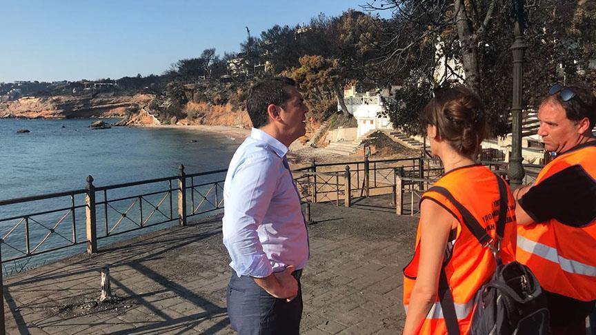 Yunanistan Başbakanı Aleksis Çipras, başkent Atina yakınlarında bir hafta önce çıkan ve 91 kişinin hayatını kaybetmesine yol açan yangın bölgesini ziyaret etti.