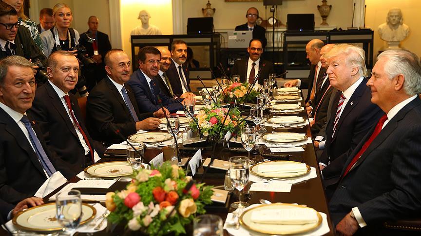 Beyaz Saray'da gerçekleşen öğle yemeğine, Genelkurmay Başkanı Orgeneral Hulusi Akar, Adalet Bakanı Bekir Bozdağ, Dışişleri Bakanı Mevlüt Çavuşoğlu, Ekonomi Bakanı Nihat Zeybekci, Enerji ve Tabii Kaynaklar Bakanı Berat Albayrak, Milli Savunma Bakanı Fikri Işık, Cumhurbaşkanlığı Genel Sekreter Yardımcısı İbrahim Kalın ve MİT Müsteşarı Hakan Fidan da katıldı.
