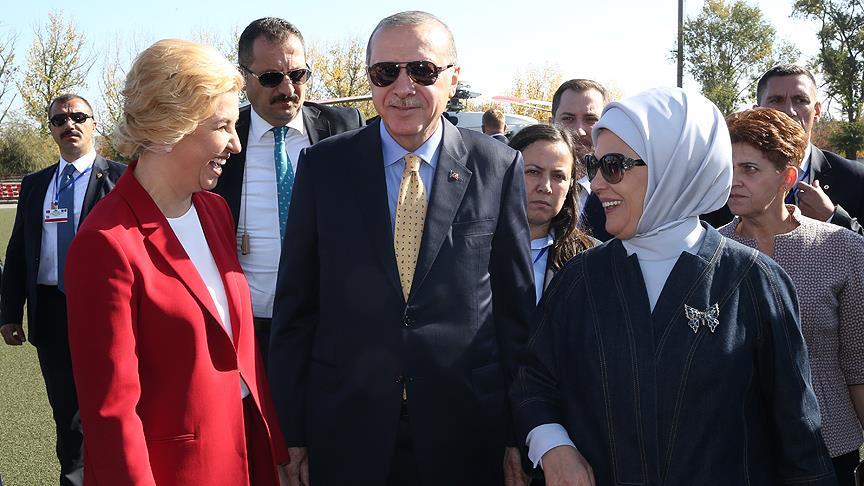 Türkiye Cumhurbaşkanı Recep Tayyip Erdoğan'ı, Gagauz Özerk Yeri İcra Komitesi binasında, Başkan İrina Vlah karşıladı.