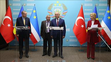 Erdoğan, başkent Kişinev'deki temaslarının ardından Moldova Cumhurbaşkanı İgor Dodon ile Gagauz Özerk Yeri başkenti Komrat'a geldi.