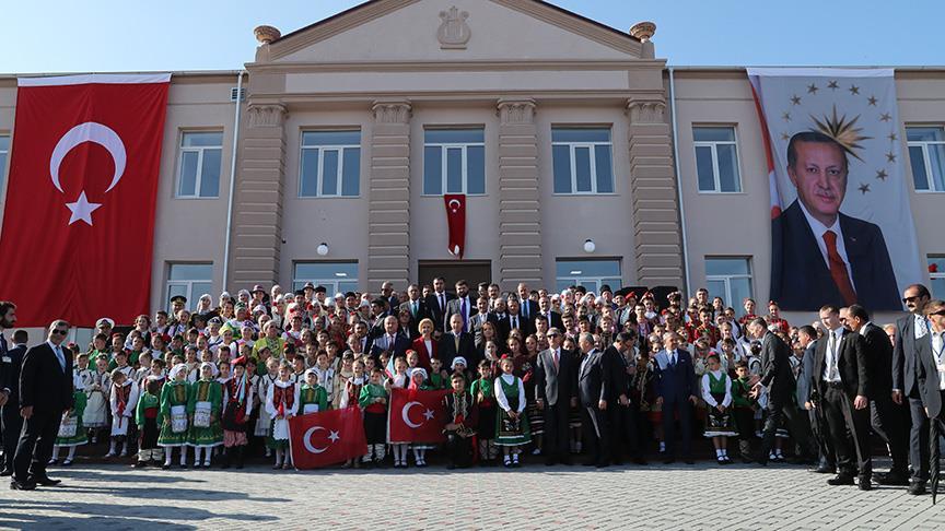 Erdoğan’ın konuşmasının ardından binanın açılışı gerçekleştirildi. Cumhurbaşkanı Erdoğan, Dodon ve Vlah daha sonra Kültür Evi’ne geçerek bir süre incelemelerde bulundu.