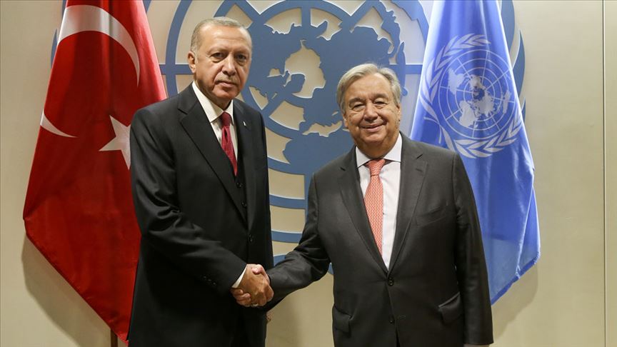 Birleşmiş Milletler (BM) 74'üncü Genel Kurul görüşmeleri için bulunduğu New York'ta resmi temaslarını sürdüren Cumhurbaşkanı Recep Tayyip Erdoğan, Birleşmiş Milletler (BM) Genel Sekreteri Antonio Guterres ile bir araya geldi.