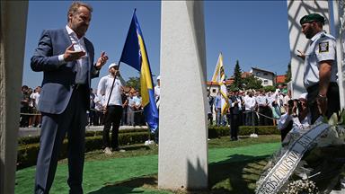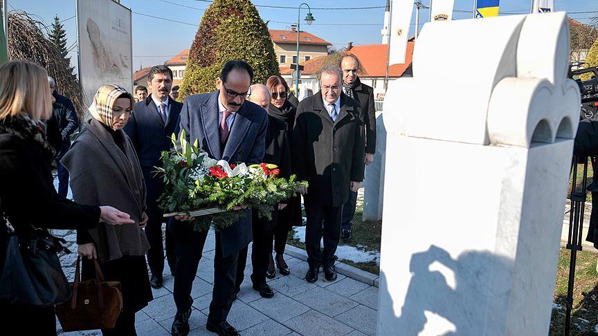 Kalın, burada İzetbegoviç'in kabrine ve şehitlik anıtına çiçek bırakarak dua etti.