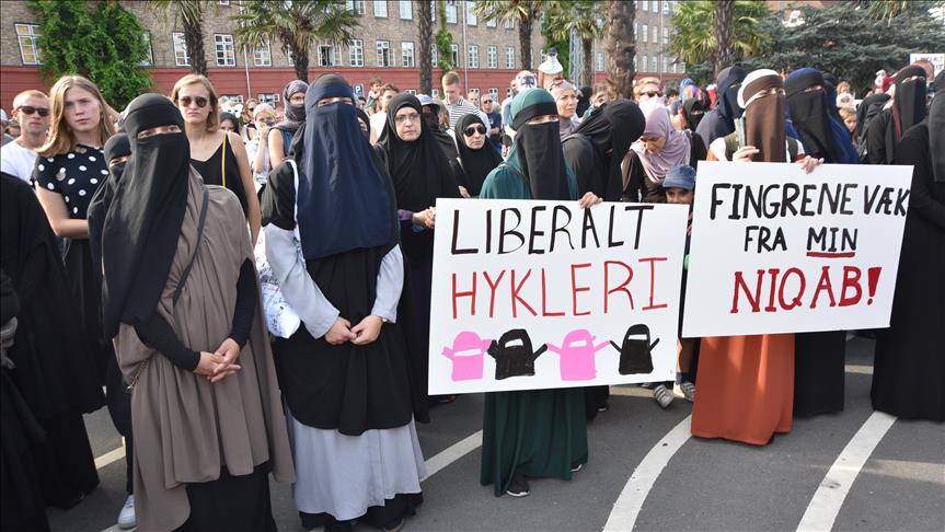 Danimarka'nın başkenti Kopenhag'da ve ülkenin ikinci büyük kenti Arhus'ta toplanan kalabalık, 31 Mayıs'ta kabul edilen ve bugün yürürlüğe giren, kamusal alanda burka ile peçeye yasak getiren "Örtünme Yasası"na karşı yürüdü.
