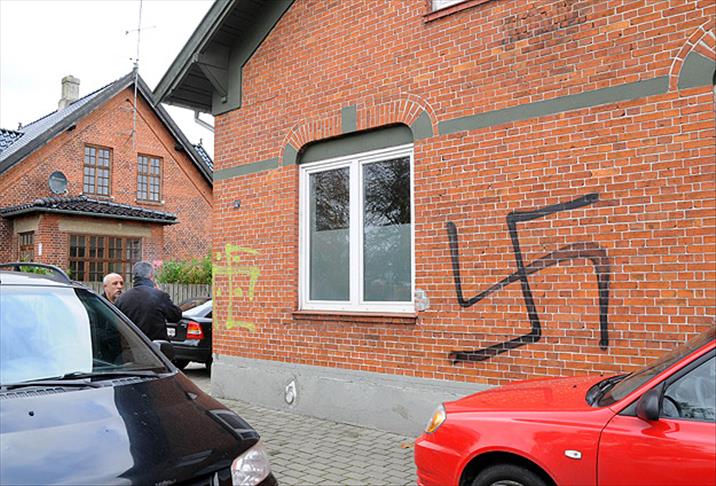Danimarka Türk Kültür Derneği tabelası altında faaliyet gösteren Taastrup Yunus Emre Camisi'ne gece giden üç kişinin duvarlara gamalı haç çizdiği belirtildi.