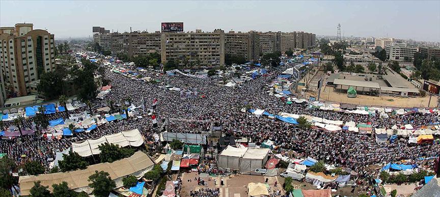 Mursi'ye destek için toplanan darbe karşıtı halk, Rabiatul Adeviyye Meydanı'nı doldurdu.