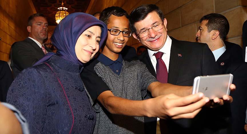 Başbakan Davutoğlu, Ahmed Muhammed'in bir gün önce, Başbakan ve eşiyle birlikte cep telefonuyla çektiği öz çekim resmini de ekte kullanarak attığı "'Her Ahmet iyidir' Davutoğlu. Türkiye Başbakanı ve eşiyle tanışmak onurdu" içerikli mesajını "retweet" yaptı.