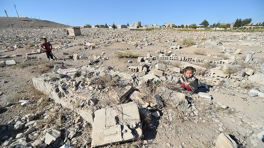 DEAŞ'lı teröristlerin, ilçenin güneyinde bulunan 3 mezarlığı tahrip ettiği, mezar taşlarını kırdığı ortaya çıktı.
