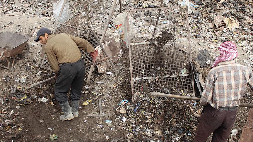 Suriye’de Beşşar Esed rejiminin ve destekçisi yabancı terörist gruplarının Kuşatması altındaki Doğu Guta’da, yerel meclis çalışanları sokaklardan toparladıkları çöplerden organik gübre üretiyor.