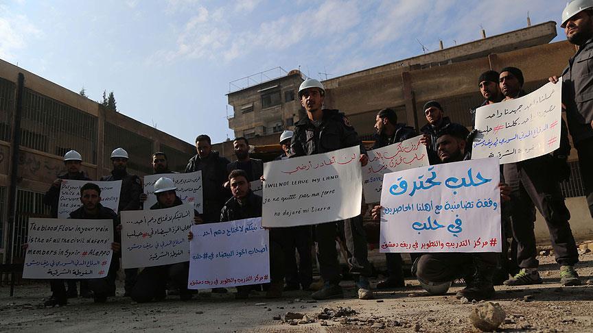Doğu Guta'da Halep'e destek gösterisi