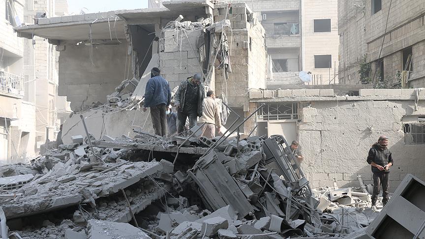 Suriye'de Beşşar Esed rejiminin ablukasındaki Doğu Guta'daki AA muhabirlerinin bildirdiğine göre, Esed rejimine bağlı güçler son iki günde Duma ve Haresta ilçeleri ile Ayn Terma, Beyt Sava, Sakba, Arbin, Merc, Medyere ve Hammuriye beldelerine yoğun hava ve topçu saldırıları yaptı.