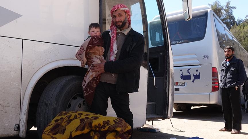 Askeri muhalif ve aileleri ile bölgeden çıkmak isteyen sivillerden oluşan 6 bin 395 kişi, 129 otobüs ile bölgeden ayrıldı.
