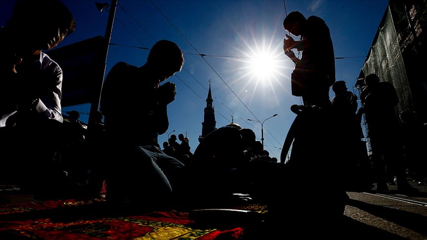 Rusya’nın başkenti Moskova'da bayram namazı için camilere sığmayan binlerce Müslüman, caddelerde saf tutmak zorunda kaldı.