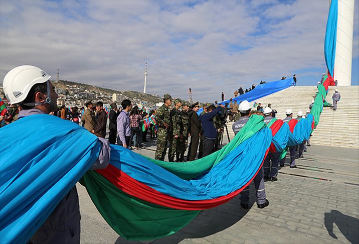 Azerbaycan'ın başkenti Bakü'de, vatandaşların katılımıyla, dünyanın en yüksek ikinci bayrak direğine, Azerbaycan bayrağı çekildi.