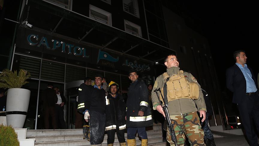 Erbil Valisi Nevzat Hadi olay yerinde gazetecilere yaptığı açıklamada, Capitol Otel'in arkasında yer alan masaj salonunda yangın çıktığını belirterek, "Elimize geçen ilk bilgilere göre elektrik kontağından çıkan yangın sonucu 17 kişi yaşamını yitirdi, 10 kişi yaralandı. Hayatını kaybedenlerin 14'ü yabancı uyruklu ve diğer 3'ü ise Iraklı" dedi.