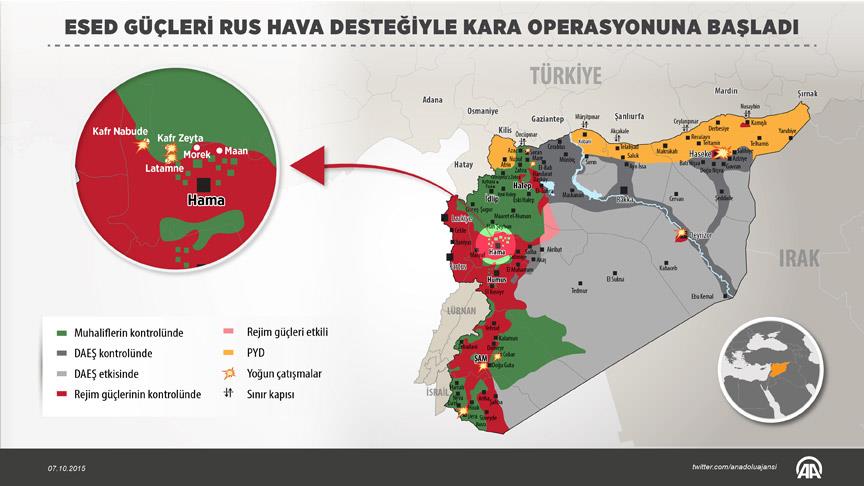 Rusya'nın Suriye'de Hama'nın kuzey kırsalındaki muhaliflere yoğunlaşan hava saldırılarının ardından Beşşar Esed rejimine bağlı güçler karadan operasyona başladı.