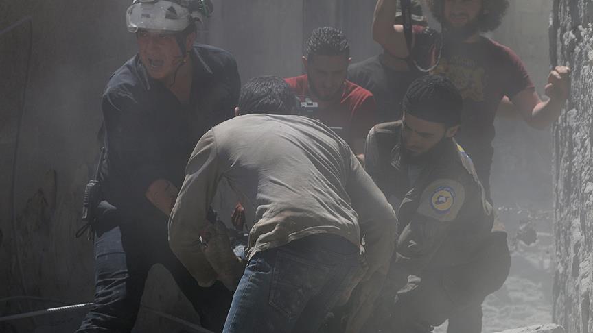 Sivil savunma yetkilileri, AA muhabirine yaptığı açıklamada, orduya ait savaş uçağının yönetim karşıtlarının kontrolündeki İdlib'in el Sevre semtine vakum bombasıyla saldırdığını belirtti.
