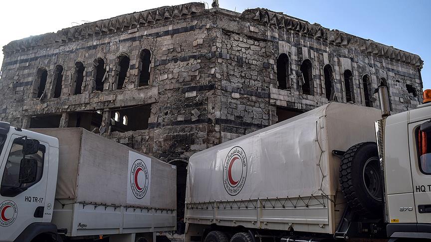 Konvoya ait 37 araç yardımları boşaltırken, 9 araç yardımları bölge halkına teslim edemeden Doğu Guta'yı terk etmek durumunda kaldı.