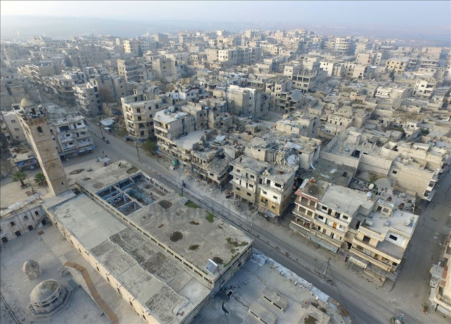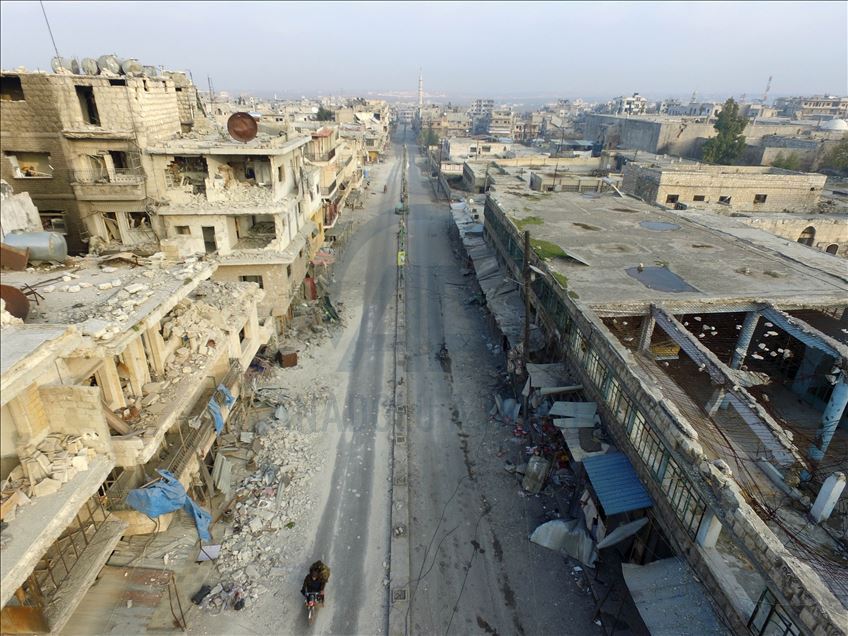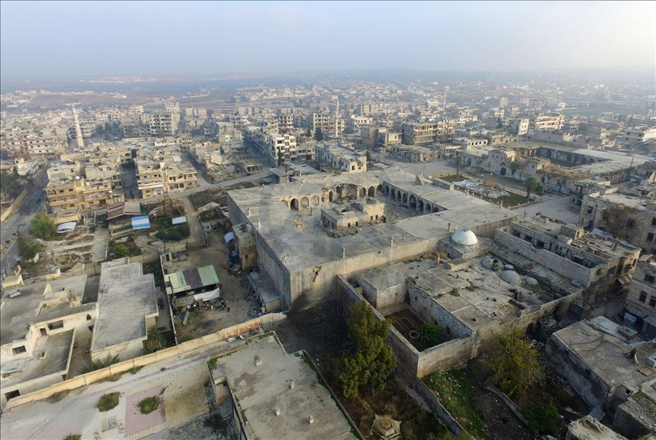 Esed rejimi güçleri, Rusya'nın hava desteğiyle İdlib'in güneydoğusunda ele geçirdiği Maarratünnuman ilçesini hayalet kente çevirdi. Hedef gözetmeden yapılan saldırılar sonrasında, ilçedeki hemen her binanın zarar gördüğü ve tarihi mekanların da hasar aldığı görülüyor. ( İzzeddin İdilbi - Anadolu Ajansı )