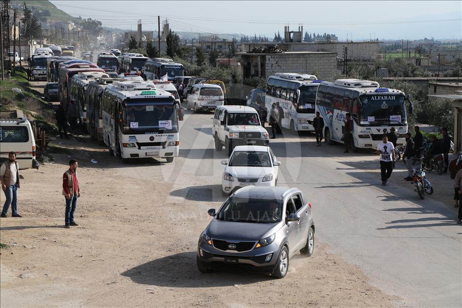 Bölgedeki askeri muhaliflerle rejim arasında varılan mutabakat gereği sabah saatlerinde yola çıkan 26 otobüslük konvoy, ülkenin orta kesiminde Hama ilindeki Madik kalesini geçerek İdlib'e ve Halep batı kırsalına ulaştı.