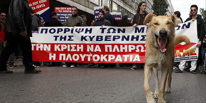 Atina'nın Sintagma Meydanı'nda gösteri yapan eylemcilerin maskotu haline gelen köpek Antuan saldırıya uğradı.***