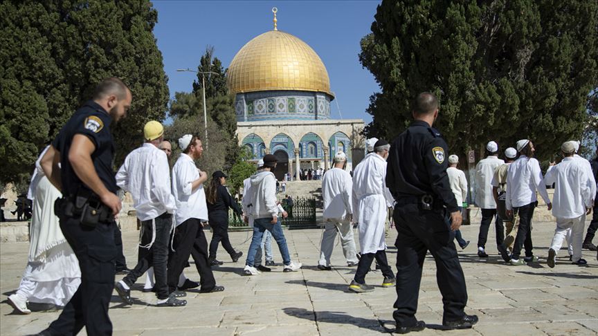 İsrail polisinin eşlik ettiği onlarca fanatik Yahudi, işgal altındaki Doğu Kudüs'ün Eski Şehir bölgesinde bulunan Mescid-i Aksa'nın avlusuna girdi.