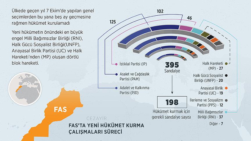 Fas'ta geçen yıl ekim ayında yapılan genel seçimlerden bu yana beş ay geçmesine rağmen hükümet kurulamıyor, bunun nedeninin de dörtlü siyasi blok olduğu belirtiliyor.