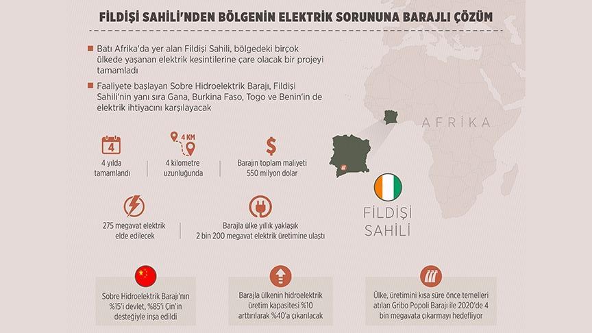 Fildişi Sahili Cumhurbaşkanı Alassane Vattara tarafından ülkenin güneybatısında hizmete açılan Sobre Hidroelektrik Barajı'nın yüzde 15'i devlet, yüzde 85'i ise Çin'in desteğiyle inşa edildi.
