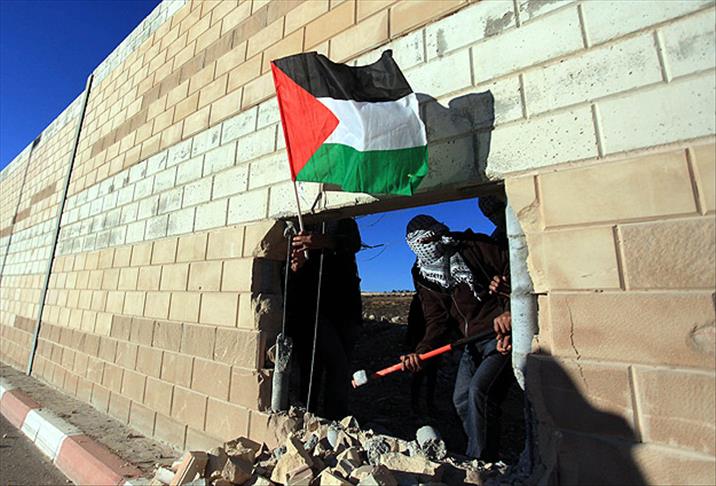Filistinli aktivistlerin Berlin Duvarı'nın yıkılışının yıldönümü nedeniyle, Kudüs'teki Ayrım Duvarı'nda delik açtıkları belirtildi.