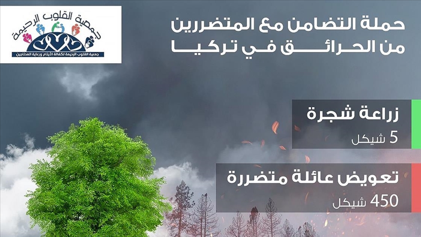 İsrail'in Nasıra kenti merkezli Merhametli Kalpler Derneği tarafından Türkiye'deki yangınlarda zarar görenler için yardım kampanyası başlatıldı.