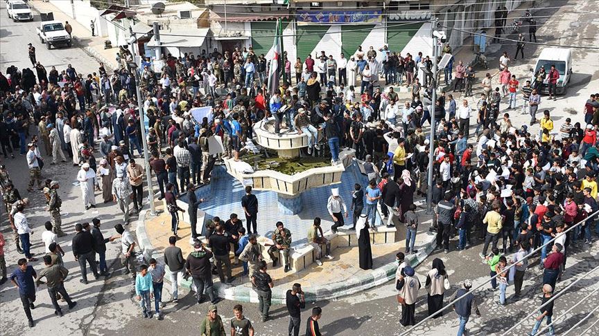Tel Abyad Yerel Meclis Başkanı Vail Hamdo AA muhabirine yaptığı açıklamada, halkın İslam'ı düşman bir din gibi gösteren Macron'u protesto etmek için toplandığını söyledi.