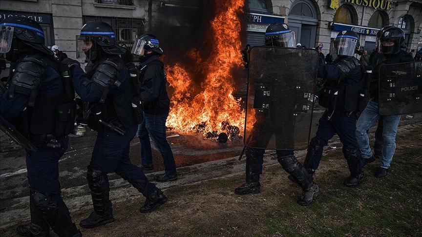 Lyon kentinde göstericiler, protestolar sırasında çöpleri ateşe verdi. Polis göstericilere tazyikli su ve biber gazı ile müdahale etti.