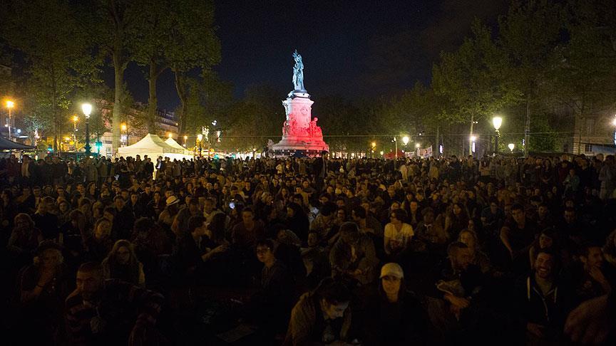 Republique Meydanı'nda çalışma yasa tasarısına karşı 31 Mart gecesi başlayan eylemler bir açık oturum havasında geçerken belli aralıklarla geceleri toplanan katılımcılar sabaha kadar hükümet politikalarına yönelik görüşlerini ve taleplerini belirtiyor.