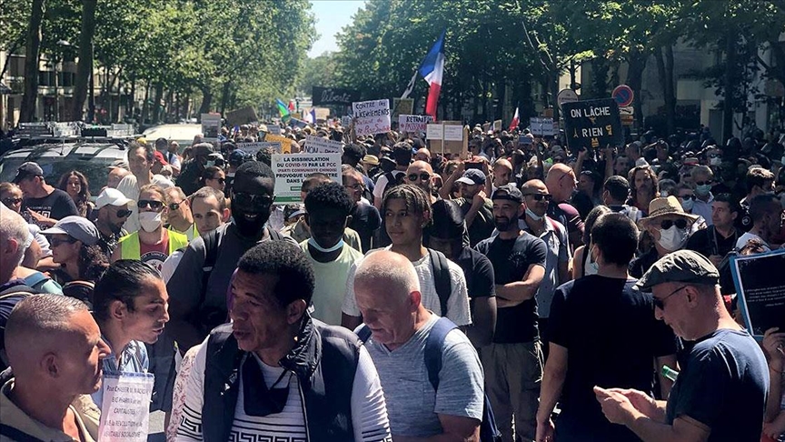 Başta başkent Paris olmak üzere ülkenin 150'den fazla noktasında, yasadaki özellikle bazı mesleklere getirilen aşı zorunluluğuna ve Kovid-19 sağlık ruhsatı uygulamasına karşı çıkanlar, ülkenin dört bir yanında meydanları doldurdu.