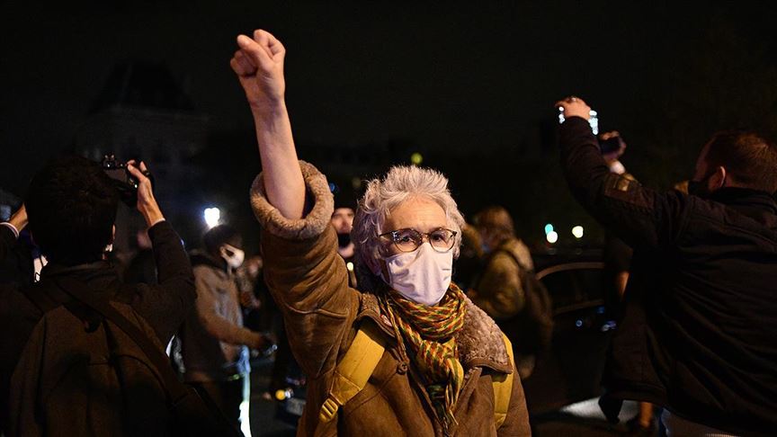 "Macron istifa", "Fransızlar uyanın" ve "Herkes sokağa çıkma kısıtlamasından nefret ediyor" sloganları atan göstericiler, Les Halles Mahallesi'ne kadar yürüdü.