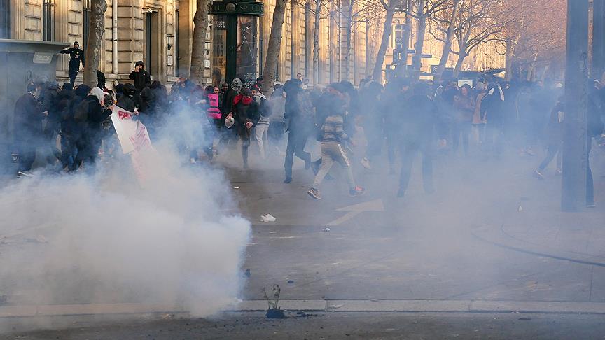 Polis, taşkınlık yapanları dağıtmak için göz yaşartıcı gaz kullandı.