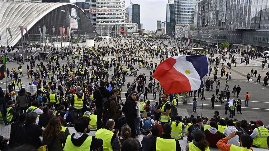 Paris'te çeşitli sokaklarda yürüyen göstericiler, Macron yönetimi karşıtı sloganlar attı. Bir grup eylemci de Orly Havalimanı'nda gösteri yaptı.