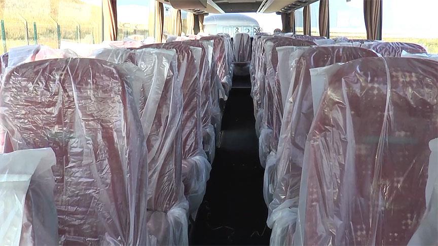 Sığınmacıları taşımak üzere devlet tarafından tahsis edilen yüzlerce otobüsün koltuklarının, hijyen gerekçesiyle kalın ve şeffaf bir plastikle kaplanmış olduğu görüldü.