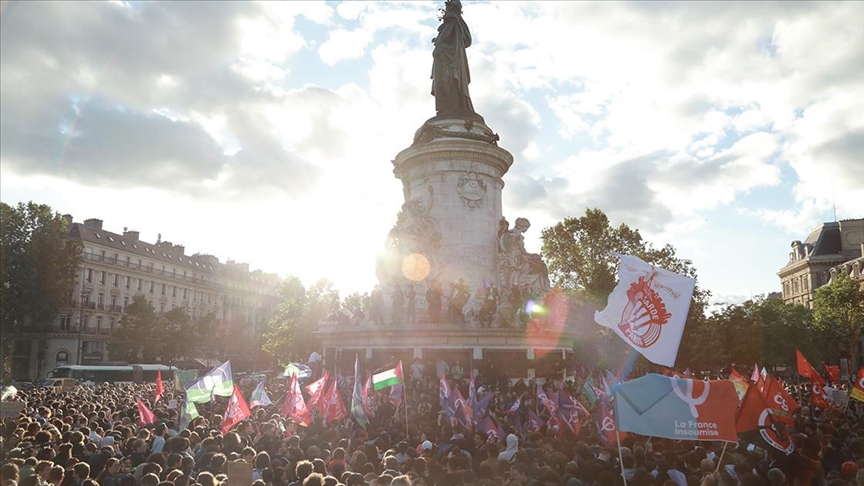 Paris'teki gösteride, eylemciler, ülkedeki Avrupa Parlamentosu (AP) seçimlerinde sandıktan aşırı sağın galip çıkmasına tepki gösterdi.
