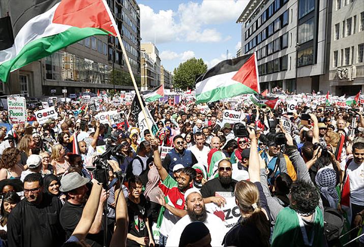 İsrail'in Gazze saldırıları, İngiliz yayın kurumu BBC'nin önünde toplanan ve Birleşik Krallık genelinden başkent Londra'ya gelen onbinlerce kişi tarafından protesto edildi.