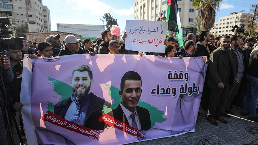 Ulusal İslami Güçlerin çağrısıyla Gazze'deki Meçhul Asker Anıtı bahçesinde düzenlenen gösteride, İsrail güçlerinin Batı Şeria ve Gazze'de 3 Filistinliyi öldürmesine tepki gösterildi.